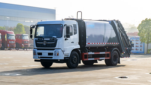 東風(fēng)多利卡壓縮式垃圾車改裝容積10~12m3,選用3950和4500兩種軸距底盤,箱體采用邊4底5、Q235碳鋼板,帶有前推板和刮板,帶有污水箱。雙向壓縮,標(biāo)配帶掛桶反轉(zhuǎn)機(jī)構(gòu),可選其他樣式后翻轉(zhuǎn)。