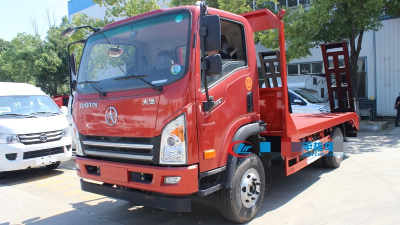 上裝采用100*100方鋼5mm花紋板制作,標配雙簧爬梯。總質量11.2噸,額定5.455噸,整備5.55噸。(可選裝純平板、單缸雙節折疊爬梯),可拉13噸挖機。