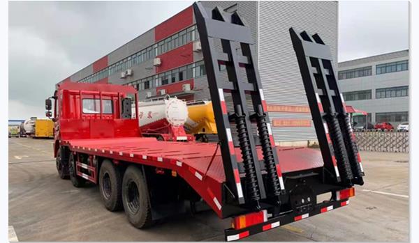 主要配置:玉柴350馬力國六發動機,法士特10檔高低速,齊星錦程駕駛室,300雙層大梁,13T雙后橋,1100R20鋼絲輪胎,軸距1950+3300/3700+1350,整車尺寸:10700/11200×2500×3150,ABS,電動門窗,行車記錄儀,氣囊座椅.總質量31噸,整備質量13.75噸、14.5噸,額定載質量17.12噸。上裝采用120*120方鋼,8mm厚花紋板,雙簧爬梯,固定支腿,加寬龍門架。可選裝單節液壓爬梯,單缸雙節液壓爬梯。可拉30噸挖機。