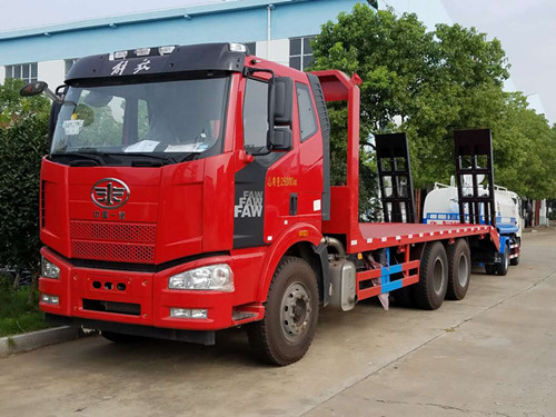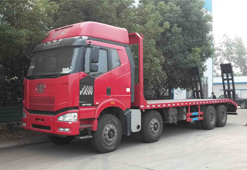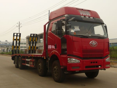 改裝部分可以根據(jù)用戶需要選擇材料。標配橫梁采用6mm厚方鋼,底板采用8mm厚花紋板,可以選擇加厚材料。 解放J6前四后八平板運輸車可以運輸35噸工程機械。廠家直銷:13997882988